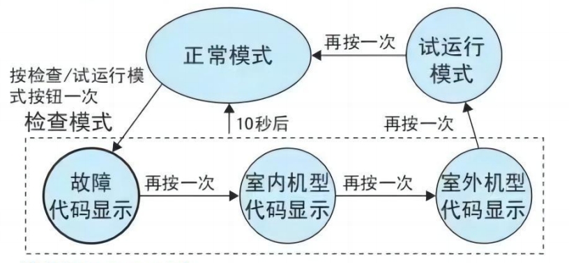 *在檢查模式下,按住開/關(guān)(ON/OFF)按鈕4秒鐘以上則清除故障記錄。