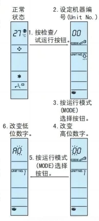 (Unit No.)的顯示,直到室內(nèi)機(jī)發(fā)出蜂鳴聲(*1)。 *1嗶音次數(shù)